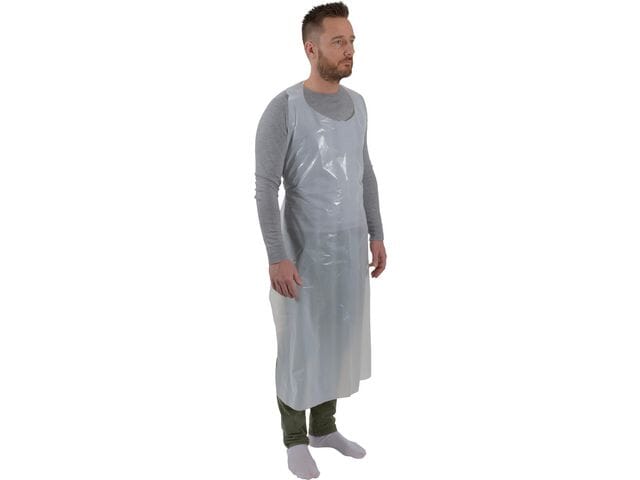 Engangsforkleet er fremstilt i LDPE med en tykkelse på 30my