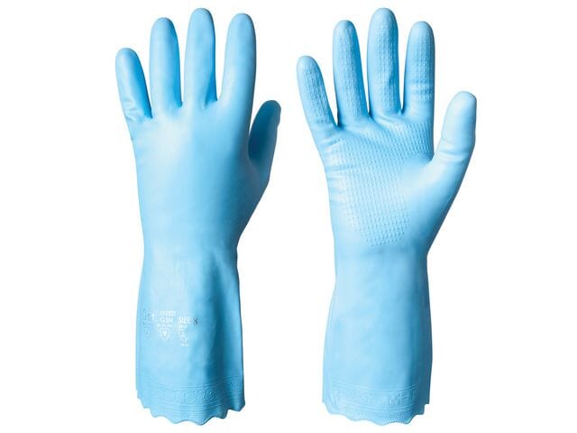 Kjemikaliehansker i vinyl/PVC Chemstar® antiallergiske, fôr av bomullsfloss. Motstandsdyktig mot mange kjemikalier, inkludert blekemiddel.
