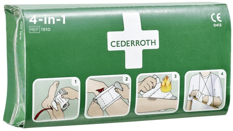 Steril universalforbinding med trykkforbindig for kraftige blødninger, yttre sår, brannskader og midlertidig støtte
