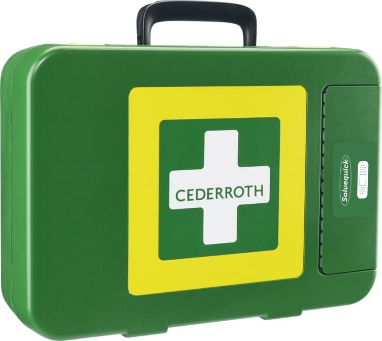 First Aid Kit X-Large er en solid og velutstyrt Førstehjelpsveske i hardplast, konstruert for å holde støv, fukt og smuss ute også i røffe miljøer.