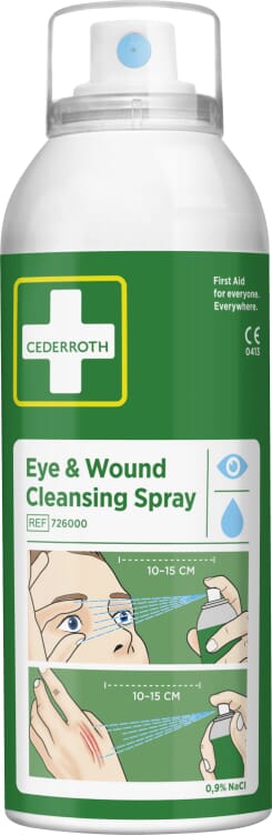 Spray for å rengjøres og skylle bort støv og smuss fra øyne og sår