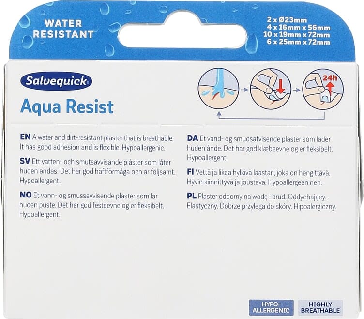 Et vann - og smussavvisende plaster som lar huden puste. Det har god festeevne og er fleksibelt. Hypoallergent. Rengjør såret, sørg for at det ikke er infisert og skift plaster hver dag.