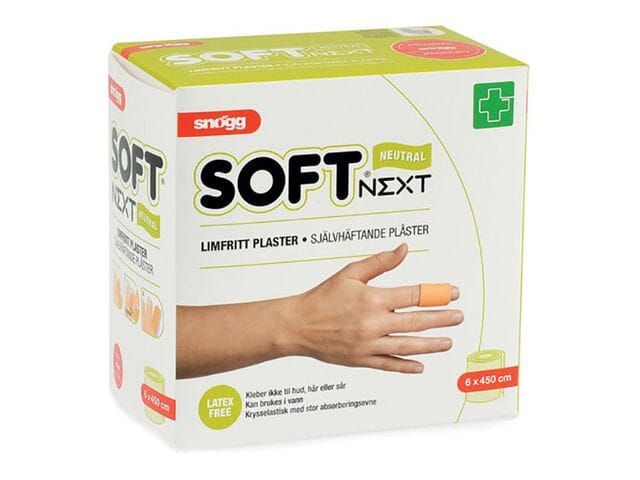 Soft NEXT lateksfritt og limfritt plaster er blodabsorberende, hudvennlig og tverrelastisk, noe som gir stor bevegelighet over ledd.