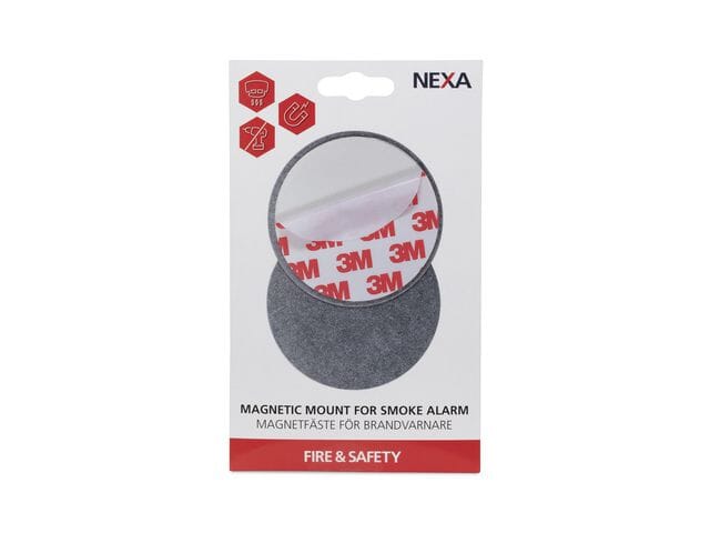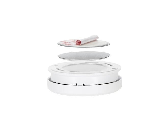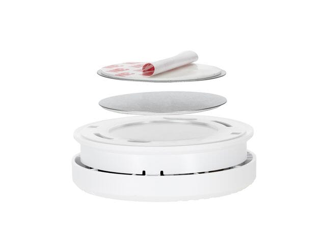 Magnetfeste med selvklebende tape for rask og enkel montering av en røykvarsler uten verktøy. Monter den ene platen i taket og den andre på røykvarsleren.