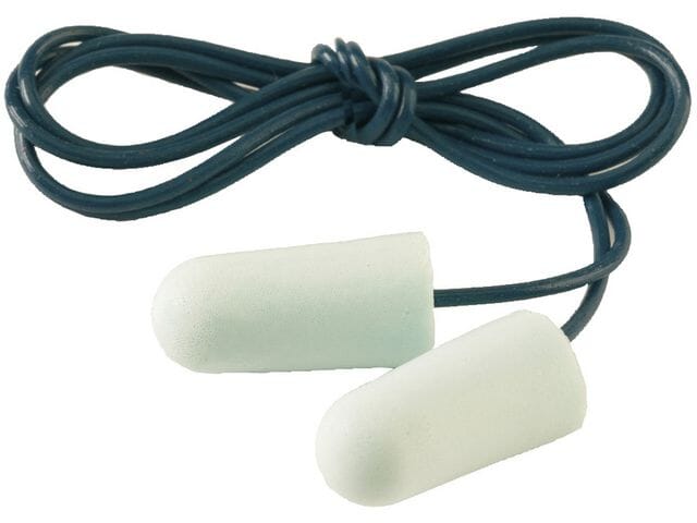 Blå ørepropper med snor som er laget av et mykt polyuretanskum som gjør de behagelig i bruk