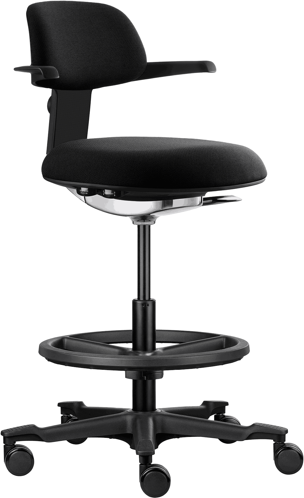 Armlenene fungerer også som håndtak, slik at stolen enkelt kan flyttes rundt, da vi ofte bytter posisjon i moderne kontormiljøer. Stolen er et resultat av dansk design og materialer av høy kvalitet. Derfor er det ikke gått på kompromiss med verken komfort, justeringsmuligheter eller ergonomi. Stolens unike design og mulighet til å velge mellom