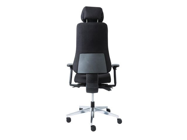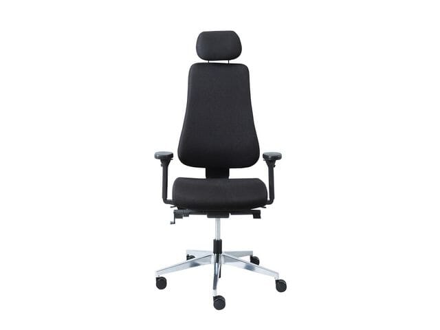 BONO Office Chair gir deg muligheter for god bevegelse og variert arbeidsstilling i løpet av en lang arbeidsdag. Med mange ergonomiske funksjoner og reguleringsmuligheter er stolen svært behagelig å sitte i. Stolens mekanisme er av type synchro tilt som gjør at ryggen og setet tiltes i forskjellig vinkel når tilt-funksjonen benyttes (forhold: 2:1). Tilt-funksjonens motstand reguleres enkelt med et ratt som er lett tilgjengelig ved siden av setet samt at tilt-funksjonen er låsbar i 4 posisjoner. - Regulering av setehøyde - Regulering av sete-vinkel og -dybde - Ekstra bredt sete - Tiltfunksjon for rygg og sete - Regulering av rygghøyde - Avtakbar og regulerbar nakkestøtte - Avtakbare og regulerbare armlener for høyde, vinkel, dybde og bredde - Farge på stol: sort og krom - Anbefalt maksimal vekt: 120 kg - Enkel montering - Garanti: 5 år - Leveres standard med nakkestøtte og regulerbare armlener - Leveres med slitesterkt sort stoff i sete og rygg - Setehøyde: 490 600 mm