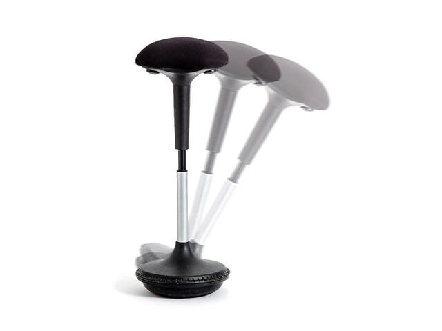 GetUpSit er en god balansestol med stor høydejustering som gir deg støtte i overgangen mellom sittende og stående arbeidsstilling. Stolens skålformede fot med anti sklibelegg gjør at bevegelsen tas ut helt nede ved gulvet og dermed byr på stor bevegelsesfrihet og variasjon i sittestilling. - Rygg og magemuskulatur trenes dermed automatisk med en mer aktiv sittestilling - Ved at du sitter med hoftene i en mer åpen stilling og retter opp ryggen, så vil du få et økt oksygenopptak sammenlignet med å sitte på en ordinær stol - GetUpSit passer ypperlig på kontor, lager, for behandlere og andre i yrker der det stilles krav til fleksibilitet og varierte arbeidsstillinger - GetUpSit er god i kombinasjon med en ordinær kontorstol. Sitt rett på stolputen og juster høyden slik at føttene har god kontakt med gulvet - Farge: svart stoff - Justerbar høyde: 530mm - 850 mm - Setediameter 300 mm - Vekt: 13 kg - Vektgrense: 125 kg