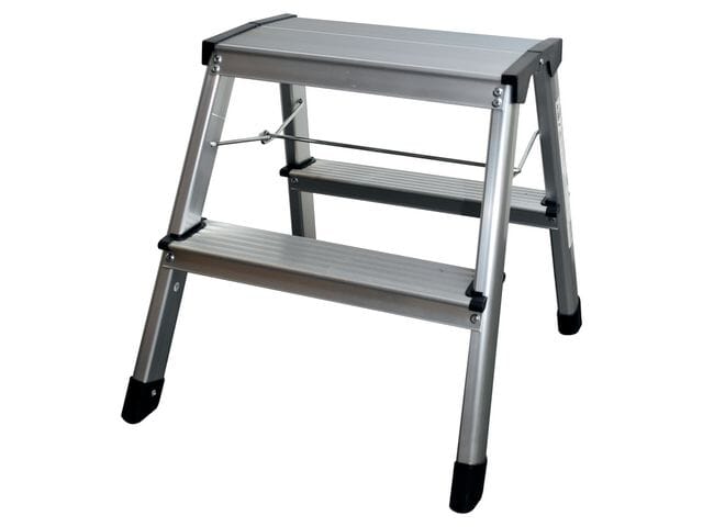 Trappestige, Wonday® med bæreevne på 150 kg. Sammenleggbar trappestige av metall med 2 trinn og platå i midten. Trinnene er sklisikre og plassert på hver side av platået. - Mål slått sammen (HxBxD): 43 x 34,5 x 19,3 cm - Vekt: 2 kg - Sertifisert i henhold til EN14183