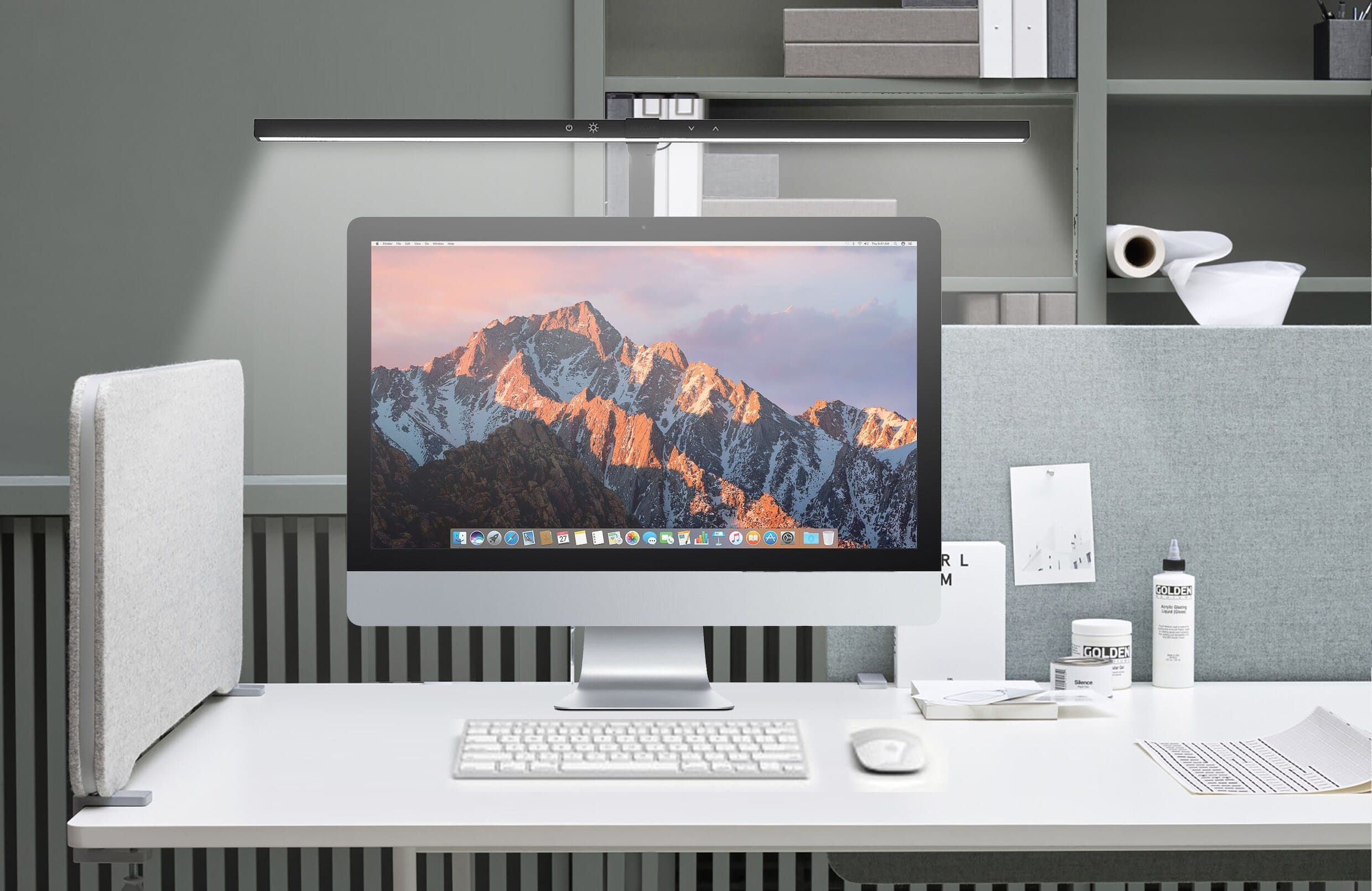 installere, siden den kan klipses på bakpå skrivebordet. Lampen plasseres over dataskjermen, noe som gir en stor lysflate som er svært tilpasningsdyktig takket være de to taktile bryterne som er plassert på hodet.