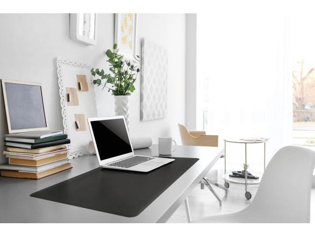 Skrivebordsmatte med avrundede hjørner og dekorativ kant, beskytter bordet mot slitasje og gir en myk og behagelig skrivefølelse og blir en fargerik interiørdetalj.