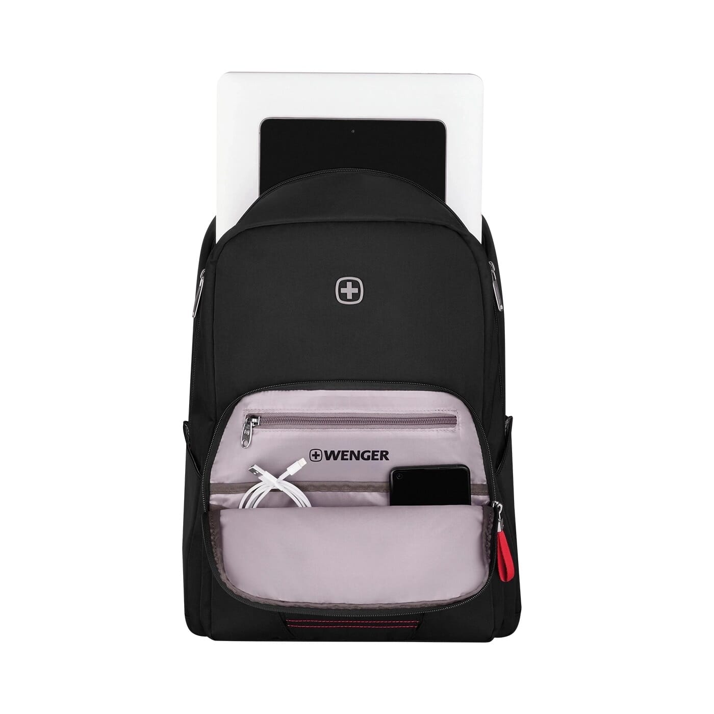 Wenger Motion Backpack, 15.6" Laptopsekk med nettbrettlomme, Chic Black Elegant og funksjonell – Motion Backpack kombinerer stil med smart oppbevaring. Denne allsidige sekken matcher ethvert antrekk og gir deg full bevegelsesfrihet.