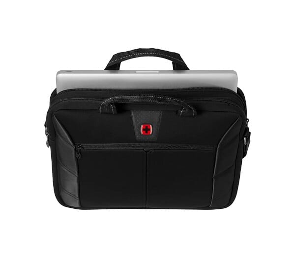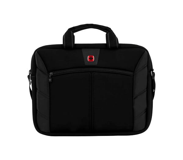 Denne elegante, slanke vesken har et beskyttende, polstret rom for den bærbare datamaskinen din, pluss en praktisk lomme for enkel tilgang av mobiltelefon eller lommebok. De justerbare, polstrede skulderstroppene og håndtakene gjør den superkomfortabel å bære, mens den smart designede baklommen kan åpnes med glidelås for å bli et trillehylster for å feste vesken til annen bagasje om nødvendig.