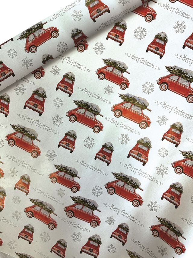 Gavepapir i diskrull m/juletre på taket, hvit bakgrunn. Koselig innpakningspapir m/juletre på taket, hvit bakgrunn. Måler 154m og er perfekt til julegavene. - 154mx57cm - Mål papir: 70gr