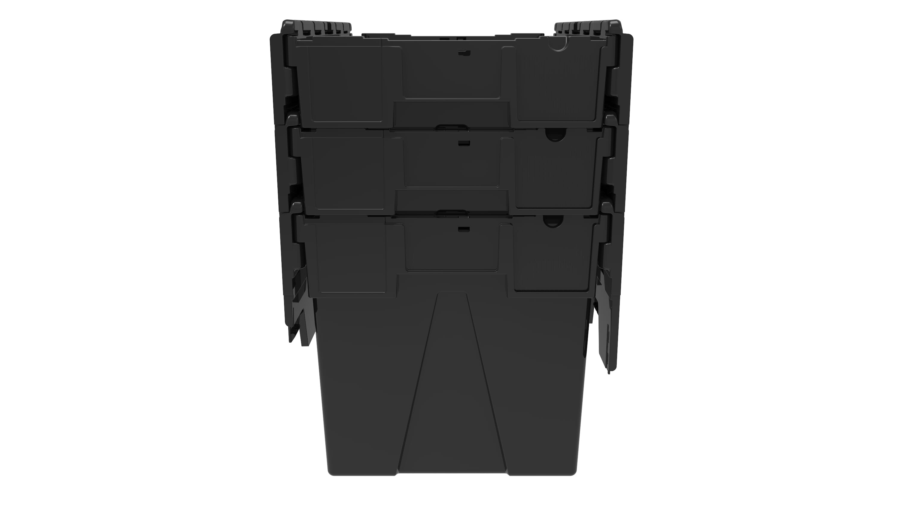 Plastkasser for gjenbruk ved transport eller oppbevaring. Solid resirkulert plast med påmontert lokk. Plastkassene er designet for automatisering og manuell håndtering. Kan stables stabilt ved transport og kan settes oppi hverandre ved lagring.