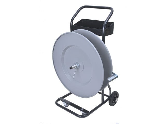 Kassen på toppen av avrulleren rommer låser og verktøy. Hjulene på forsiden av avrulleren gjør den lett å transportere mellom strappingene. Velegnet for tunge bånd da den har fire hjul, hvorav de to foran er svingbare.