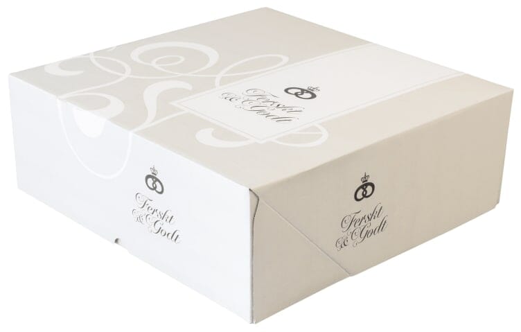 "Bako standard kakeeske med kvikklokk-funksjon og flott design. Esken settes raskt sammen og har et tidløst uttrykk. Sett gjerne på egen etikett med logo på ""båndet"" på forsiden av esken for å gjøre den mer personlig. Esken har målene 330x330x120mm. og kommer i bunt på 20 stk. FSC-merket. Det må brukes en tilstrekkelig barriere mellom matvaren og esken, for eksempel et kakebrett, da det ikke skal være direktekontakt med matvarer og esken. Kakebrett som passer til har EPD nr. 2349181 Esken er en relansering og erstatter esken med EPD nr. 2197440"