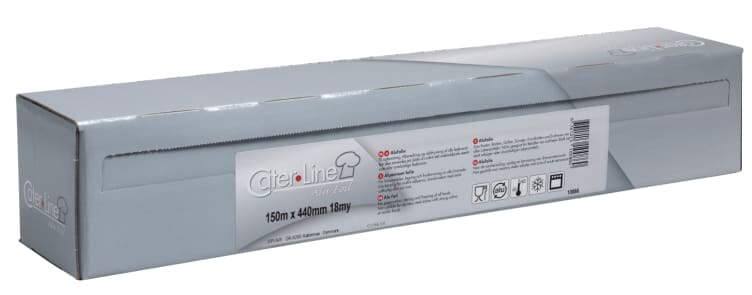 Aluminiumsfolie i cut-box i ekstra kraftig kvalitet. Filmen er lys og lufttett, og tåler frysing og grill. Dette er en grillfolie for de krevende oppgaver. 150M X 44CM, 18 MY, SØLV, I CUT-BOX, EKSTRA KRAFTIG