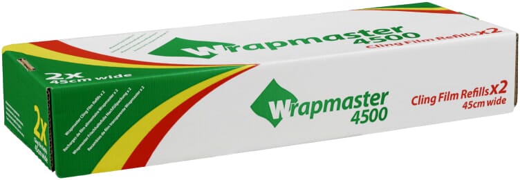 Brukes med den profesjonelle 45cm dispenseren Wrapmaster 4500. Premium plastfolie med lav migrasjon egnet for innpakking av mat og lettere tilbakerulling, som gir deg en sømløs start. Eske à 2 ruller.