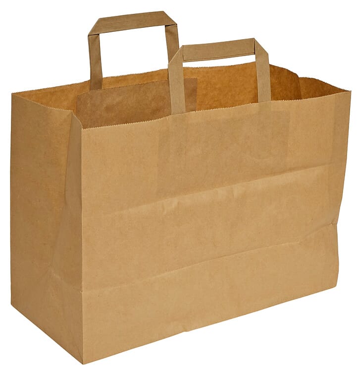 Nøytral brun papirbærepose som rommer 17 liter. Posen har flate håndtak, som sikrer god bærekomfort. Egner seg godt til takeaway, blomster og småhandler