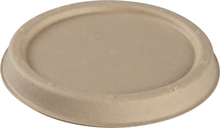 Praktisk lokk, innholdet holdes varmt og begerne kan stables. Diameter 8,1 cm, laget av sukkerrør Tilhørende porsjonsbeger fås i samme materiale EPD 6489264