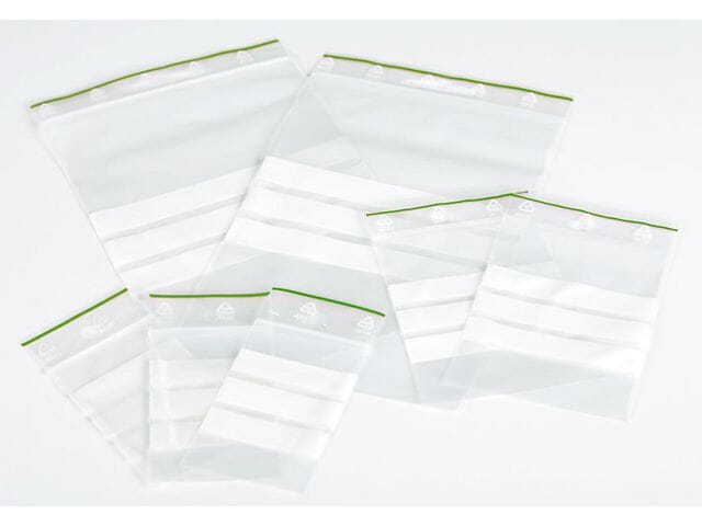Sertifisert for næringsmiddelemballasje og er egnet til kontakt med mat og drikkeLynlåsposene er laget av miljøvennlig polyetylenTykkelse: 50 mikrometerMål: 175 x 250 mmAntall i pakken: 100 poser