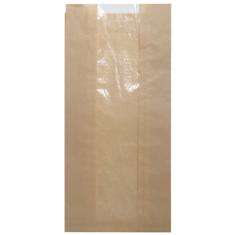 Brødpose m/perforert vindu Natur, 370x170x60mm. Praktisk brødpose i brunt papir.