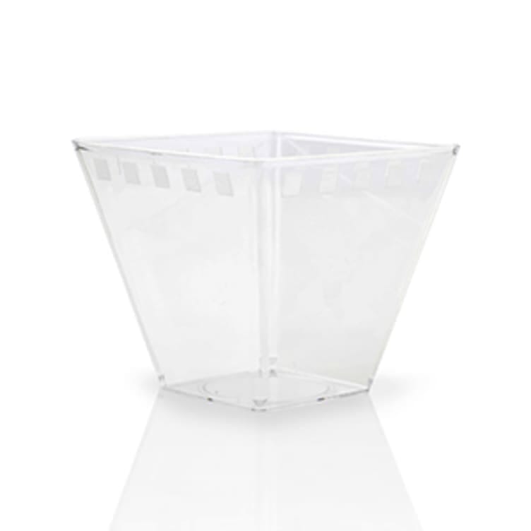 Transprent firkantet dessertbeger. Rommer 200 ml. Tilhørende lokk med EPD nr.2547131.