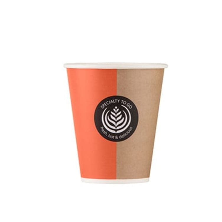 Passer til varme drikkerIdeell når du er på fartenI kantinen og andre pauseromMateriale: PappFarge: beige og oransje trykkKapasitet: 75 x 300 ml
