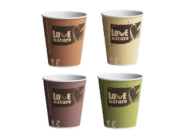 Kaffebeger Bioware i kraftig kartongmateriale til varmt drikke.