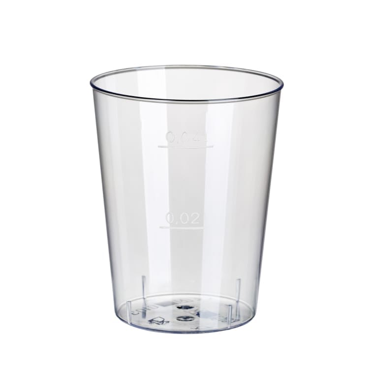 Transparent engangsglass i PS for snaps. Fyllningsmerke 2 cl och 4 cl. SUP merket med norsk tekst.