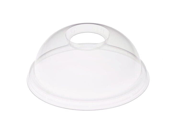 Krystallklart høyt lokk til beger i resirkulert rAPET materiale til kalde drikker, frukt og salat. 50% av materialeter resirkulertPET materiale. Avfallshåndteres som plast for materialgjenvinning.