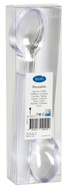 Vi introduserer vår CLEAR gjenbrukbare bestikkserie, fagmessig laget fra gjennomsiktig PS. Denne allsidige kolleksjonen er designet for å håndtere ethvert spisescenario uten problemer, fra delikat plukking opp salater til elegant slurpende supper eller uanstrengt skjæring gjennom kjøtt på ethvert sted. -4° til +100°. Tåler oppvaskmaskin 50 sykluser i +60°.
