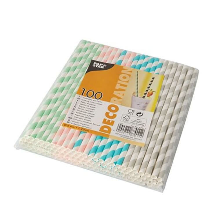 Sugerør av papir er perfekt for den som vil unngå plast! Bør ikke stå i drikken lengre enn en time. Mikset farger i striper av rosa, grønn, blå og grå.