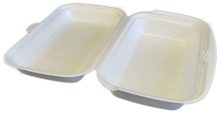 Hvit varmmat lunsjboks til varmmat. Egner seg til servering av hamburger, pommes, pølse eller andre varmretter.
