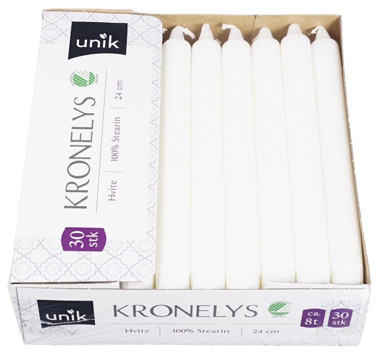 KRONELYS HVIT 100% STEARIN 24CM UNIK