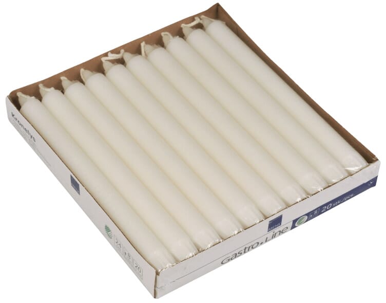Hvite kronelys med 9 timers brennetid. Flotte lys av beste råvare Stearinlys renner mindre og brenner renere. Stearinlys soter mindre og har mye lavere partikkelutslipp enn ordinære lys.