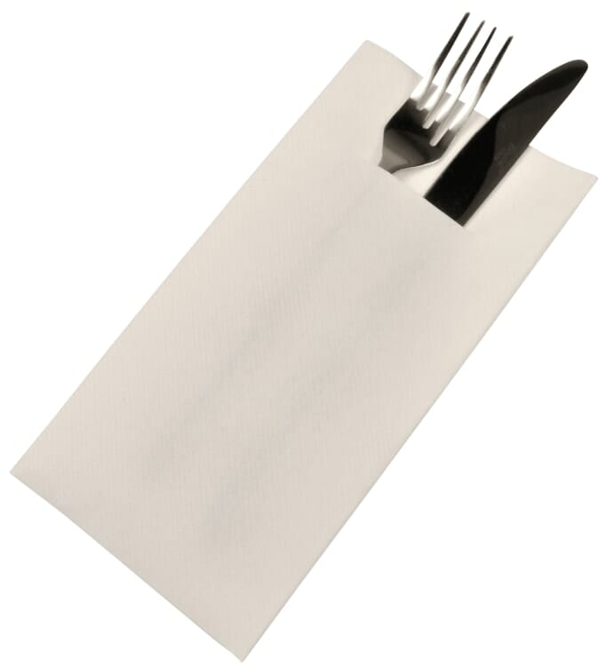 BESTIKKLOMME - ENKELT OG LEKKERT Airlaid servietter med bestikklomme er en trendy og praktisk måte å dekke bord på. Det oppleves hygienisk for gjesten, og sparer tid for servitøren. Serviettene har god kvalitet, og passer for alle anledninger. Bestikklomme-serviett er praktisk brettet, og har en liten åpning som gjør at bestikket ligger perfekt, og ferdig dekket.