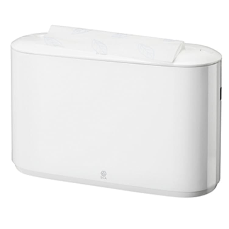 Frittstående håndtørk dispenser (H2) som passer for mange typer toalettrom og arbeidsplasser. Den er et hygienisk alternativ til stabler med ubeskyttede håndtørk. Dispenseren gir ett og ett ark.