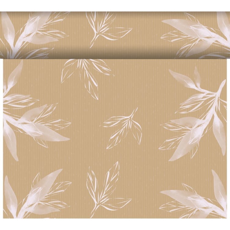 TETE A TET DUNICEL 0,4X24 ECO LEAVES Nytt rustikk men elegant design. Eco Leaves bringer naturen inn i restauranten. Perfekt for lunsj og middag på bevisste FSRs og hoteller som ønsker å ha det rette utseendet. Produktet er FSC sertifisert. Rull a 24m med perforering på 1,20m/20stk tete a tete pr rull, bredde 40cm. . Smart valg hvis du ikke vil dekke bordene helt . Forberedt løsning . Hygieniskt og friskt . Beskytter bord