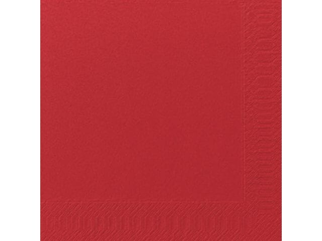 Disse Duni-serviettene av mykpapir med tre lag til engangsbruk kombinerer mykhet med ekstra styrke. Dette gjør dem ideelle for hverdagsbruk. Bruk disse allsidige Duni-serviettene til jobbarrangementer, bursdagsselskaper eller andre tilstelninger der det blir servert mat og drikke. Du kan enkelt oppbevare dem der det spises og drikkes på arbeidsplassen og plassere dem i en Duni-holder for mest effektiv bruk. Disse resirkulerbare serviettene er brettet i fire og er laget av mykpapir med tre lag. Du kan velge mellom en rekke forskjellige farger. - Engangsserviett, 3-lags - Allsidig valg for jobbarrangementer og selskaper - Resirkulerbar - Materiale: Mykpapir - Én pakke inneholder 125 servietter - Farge: rød - Mål: 40 x 40 cm.