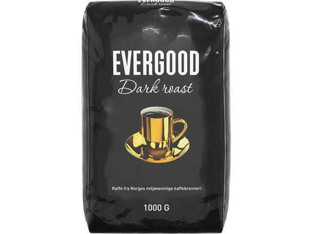 EVERGOOD Kaffe består av 100% Arabica-bønner fra Colombia, Kenya, Costa Rica, Brasil og Guatemala. EVERGOOD Dark Roast er en mørkere brent kaffe med kraftig aroma og kontinentalt preg. I frodige fjellområder høyt over havet, finnes det unike klimaet som modner kaffeplantens bønner langsomt. Slik får den fyldige, aromatiske smaksrikdommen som kjennetegner EVERGOOD Kaffe tid til å utvikle seg.