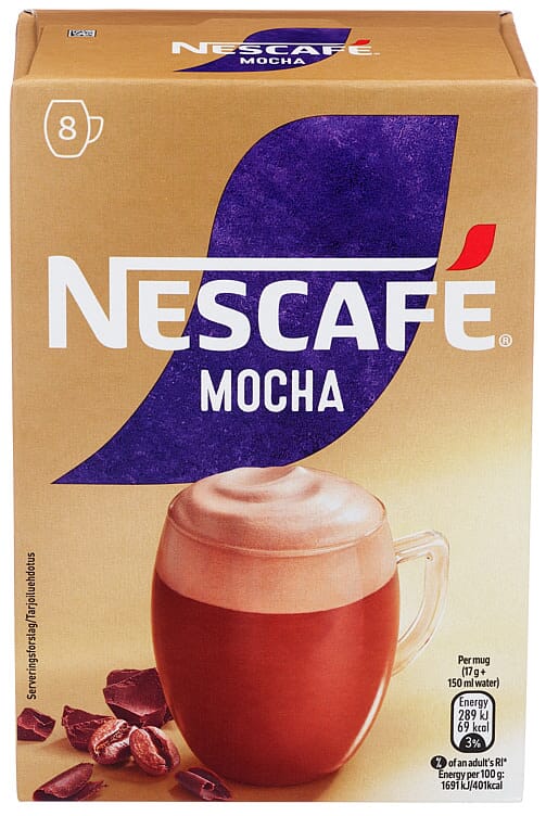 • Mocha er en lekker kombinasjon av NESCAFÉ-kaffe, sjokolade og lekker kremet melk • 100 % Coffee shop-nytelse – lag din egen kaffespesialitet hjemme • Kremet melkeskum på toppen av hver kopp • Fremstilt av pulverkaffe, kakao, skummetmelkpulver og sukker • NESCAFÉ Plan tar vare på våre lokale kaffebønder