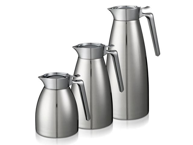 Qline Large 1L er en dobbeltisolert serveringskanne i rustfritt stål med hengslet lokk for enkel betjening. - Dimensjoner (diameter x høyde): 105 x 254 mm - Regelmessig rengjør med Cleaner (v.nr 208279), anbefaler ikke oppvaskmaskin.