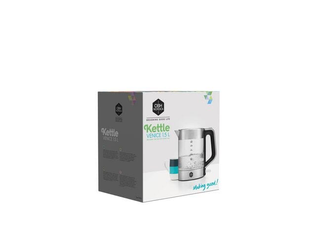 Elegant vannkoker i kvalitetsmaterialer. Venice Glass Kettle har bekvemt håndtak og helletut som gjør vannkokeren veldig brukervennlig. Kombinasjonen glass og rustfritt stål er ikke bare pen, men gjør vannkokeren veldig enkel å rengjøre. Lag en god kopp te eller effektiviser matlagingen ved å koke opp vann rett i Venice Glass Kettle. - Automatisk deaktiveringsfunksjon og tørrkokingssikring for sikker bruk - Med kapasitet på 1,5 l dekker den behovene dine uten å ta for mye plass på kjøkkenet.