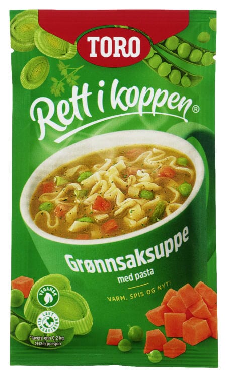 TORO Rett i koppen Grønnsaksuppe gir deg en varmende pause. Passer perfekt når man er litt sulten og vil ha noe raskt og enkelt, enten det er hjemme eller på farten. Varm, spis og nyt!