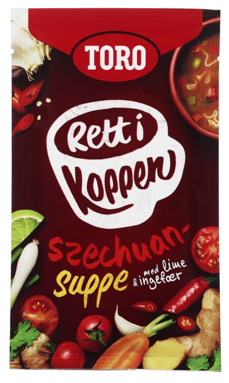 TORO Rett i koppen Schchuansuppe gir deg en varmende pause. Passer perfekt når man er litt sulten og vil ha noe raskt og enkelt, enten det er hjemme eller på farten. Varm, spis og nyt!.