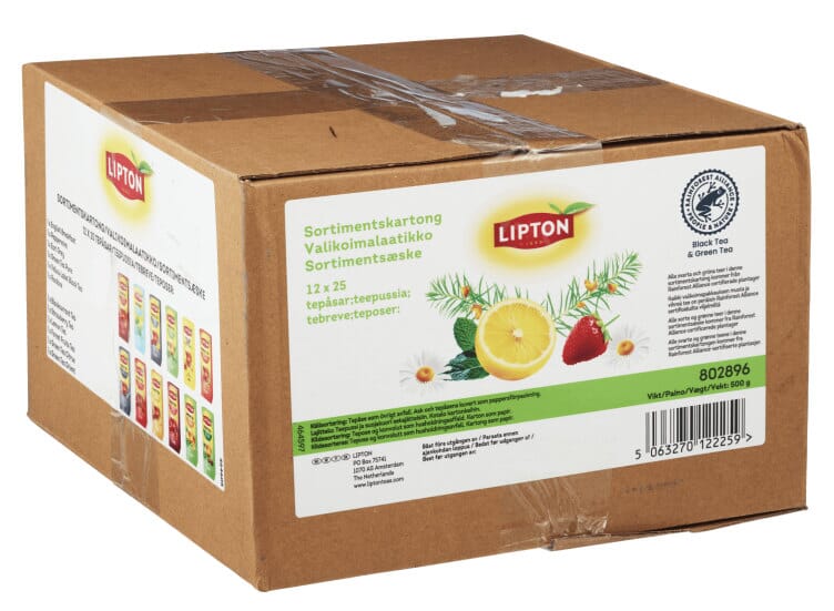 "Et assortert utvalg av Liptons mest populære teer i en praktisk og pen displayløsning. Hver tepose er foliepakket for å bevare den friske smaken. aromaen og fuktigheten. Inneholder 12 varianter á 15 teposer (180 teposer): Forest Fruit. Blue Fruit. Lemon. Earl Grey. English Breakfast. Yellow Label. Vanilla. Green Tea Mint. Green Tea. Green Tea Citrus. Chamomile (urtete). Rooibos. For en positiv og bærekraftig utvikling for både mennesker og miljø er teene (utenom urtete) høstet fra Rainforest Alliance-sertifiserte plantasjer. Les mer på www.ra.org."