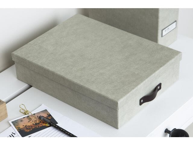Enkel og stilren oppbevaringsboks for papirer, dokumenter og småsaker. Elegant design med lærhåndtak, og passer i de fleste hjem og kontor.