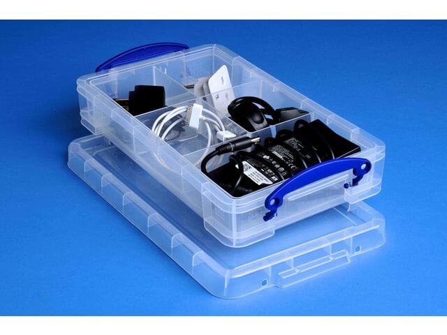Really Useful Boxes® er slitesterke bokser som kan stables. Disse praktiske oppbevaringboksene kan brukes til oppbevaring og lagring både hjemme og på kontoret. Ideell for oppbevaring av kabler og hobbymateriell.